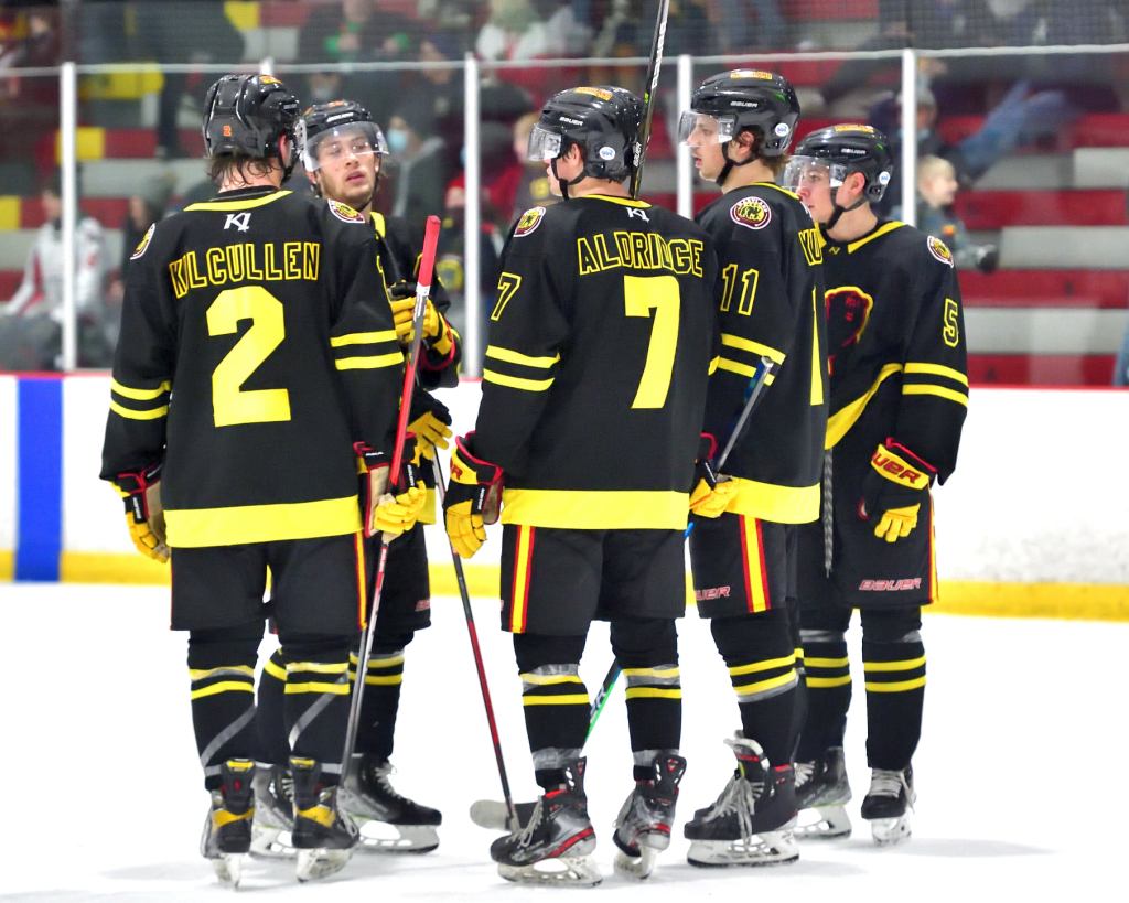 FRIDAY NOVEMBER 26th, 2021: BLACK BEARS (4) vs. Danbury (7): A Murphy’s Law kind of game for the Black Bears, as many bad breaks and tough bounces befell on the team on Friday night. Danbury got on the board first at 2:47 of the first, with Gabe Dombrowski opening the scoring thanks to a solid Danbury breakout and quick passing to beat Michael Morelli on a 2-on-1 to give Danbury the lead. Maryland soldiered on, trying to create some chances going the other way, but Josh Seeley would be the thorn in the Black Bears’ side in the first, playing collected hockey to keep Danbury up. Exactly six minutes after the first goal, Andrew Eberling gave Danbury a two-goal advantage, deflecting a Robert Hyde shot in, after the Black Bears had some sustained offensive time, only to have Danbury be the team to notch the goal. The Black Bears kept getting chances in the second half of the period, but nothing to show going into the intermission.