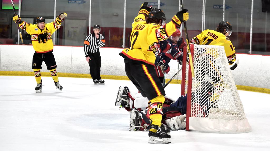 The start of the period saw the Black Bears continue to press, looking for that third goa, but Jamestown not only withstood pressure, but returned it; being able to get behind the Black Bears’ defense and create some odd-man rushes. Luckily for Maryland, Luca Di Pasquo was dialed in and made some crucial saves to keep Jamestown shaking their heads. More penalty troubles for Maryland saw the penalty kill and Di Pasquo come up very big in the tests against them. The Black Bears did swing the momentum at the end of the period, which led to Ryan Bottrill getting a penalty shot after he was hauled down. However, Suggs shut off his five-hole and kept the game 2-0 after two periods.