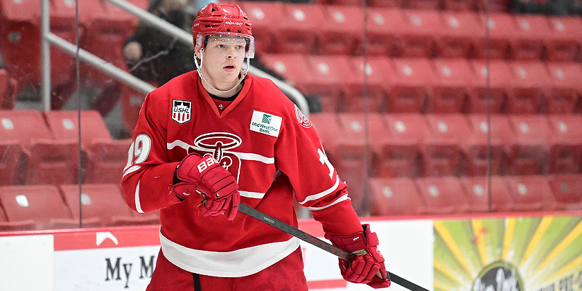 First to go was Halliday, who went in the 4th round (104th overall), is coming off a stellar campaign that saw him net 35 goals and 95 points in the USHL. With that scoring, Halliday was able to eclipse the Dubuque Fighting Saints all-time assists and points record with 123 assists and 181 points in 160 games with the Saints. Born in Glenwood, MD; Halliday plied his craft in the Greater Toronto Area as a youth player before heading to the USHL. He’ll be heading to the Ohio State University next season.