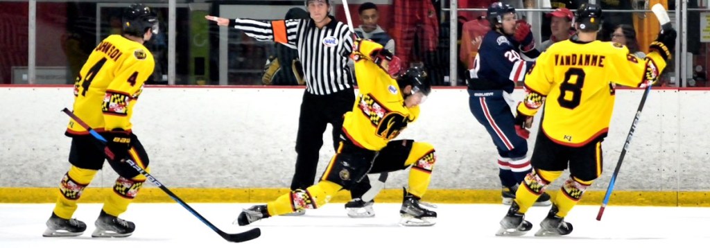 NOVEMBER 11th, 2022: BLACK BEARS (3) vs. Philadelphia (0): After a week off, the Black Bears returned to home ice to start a pretty busy week ahead and the first of three meetings in five days against the Philadelphia Rebels. Things got off to a rough start for Maryland, as penalties started to mount up. The penalty kill was sharp as ever, not letting the Rebels into any scoring position while shorthanded. After some big saves from William Hakansson, the Black Bears caught a break shorthanded with Christian Catalano getting free on a Rebels’ line-change and wiring it over the glove of Krbecek for the 1-0 Maryland lead. Another penalty for Maryland was killed and then it was the Rebels’ turn for penalties. While Maryland was dominant in the first power play, they couldn’t connect at first. It wasn’t until late when Gabriel Westling got a great set-up pass from Luke Van Why and hammered it home for the two-goal lead going into the first intermission.