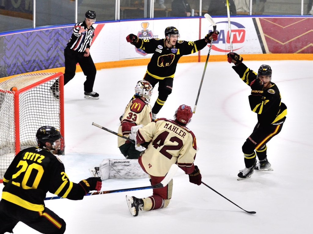 Penalty trouble on both sides made it for different personnel looks, but Maryland did a bulk of the heavy lifting on the penalty kill and kept their two goal advantage when all was said and done. Minot was lingering heavily in their offensive zone, but Lepak and the defense sold out to keep their lead intact and withstanding the attack paid off. A penalty against Minot in the middle of the frame allowed the Black Bears power play to get to work again and thanks to a fantastic keep in the zone by Cal Hutson, that allowed the puck to work its way to Sam Stitz who hammered a shot to make it 4-1 for Maryland. Moments later, Minot cut the lead back to two as Cayden Casey got behind the defense and put home his fifth to make it 4-2. But try as they might, the Minot defense couldn’t get anything else past the defense or Lepak, all while Tremblay netted a hat trick goal into the empty net and Riley Ruh added another for good measure to give the Black Bears a 6-2 win and punch their ticket to Tuesday’s Robertson Cup Final.