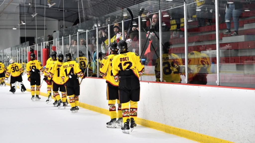 SATURDAY OCTOBER 26th, 2024: BLACK BEARS (6) at New Hampshire (4): An unfortunate start for the Black Bears, as a defensive turnover resulted in Charlie Vincent netting the opening goal only 22 seconds into the game. Maryland than started to get rolling, firing all they could at the net. It paid off as Liam Doherty tallied his first of the year banking in a rebound off the goalie to tie the game. While the Black Bears continued to press, New Hampshire got the lead back with a point shot banked off Alex Gelhar’s skate to make it 2-1 late into the period. Maryland got down two early, as William Parent ripped a shot on an odd-man rush to make it 3-1. The Black Bears got it back 1:02 later with Evan Sofikitis wiring a shot and pulled Maryland to within one. Then only 1:08 after that, Isac Nielsen put home his fifth of the year on the power play off a great pass from Harrison Smith to tie the game. The Black Bears continued to press, but couldn’t find the go-ahead goal before intermission. Things didn’t go the proper way for Maryland as New Hampshire netted three goals in 3:26, starting with Kim Hilmersson putting an odd angle shot to make it 4-3. Two minutes plus after, Jack MacDonald made it 5-3, with Hilmersson making it 6-3 on an odd-man rush to make it 6-3 for New Hampshire. The Black Bears would press to try and get back into the game, but it wasn’t until 2:10 left when Nielsen ripped a shot to get the game to 6-4, but the Black Bears would fall in Saturday’s matchup Maryland is on the road again next weekend, as they take on Elmira in the first matchup between the two clubs.