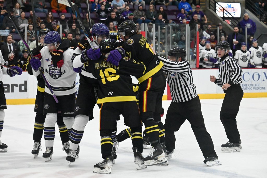 FRIDAY FEBRUARY 21st, 2025: BLACK BEARS (2) at Elmira (0): After the fireworks from Maryland Mayhem weekend, the Black Bears and Elmira started the game a little more physical than most games. Each team had their fair share of offensive chances, especially with each team getting a power play late in the frame, but neither team could find the back of the net through the first 20 minutes.