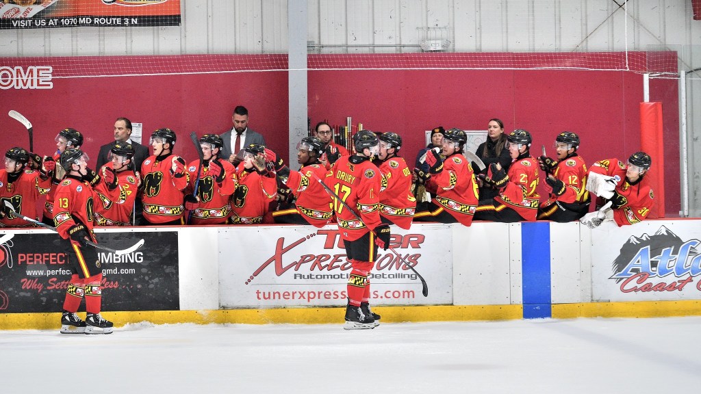 SATURDAY OCTOBER 18th, 2025: BLACK BEARS (6) at Johnstown (3): A frantic first period to kick off the game as Brady Anes batted home his first NAHL goal after banking it off the Johnstown goalie to make it 1-0 Maryland 2:32 into the game. Johnstown tied it up less than a minute later with Emerson Marshall cutting to the crease and beating Ryan Denes. Only 26 seconds later, Josh Frenette got Maryland ahead again, picking up the puck in the slot, spinning, and firing home his third to make it 2-1. Johnstown tied it up again, as a missed clear led to Marshall’s second goal of the night from the slot. The Black Bears got into penalty trouble after that, but were able to ride the penalty kill to no harm. With 2:46 remaining, Tanner Duncan picked off a clearing attempt and passed to Mate Tardi to hammer home his fourth of the year to put Maryland up 3-2 going into the intermission.